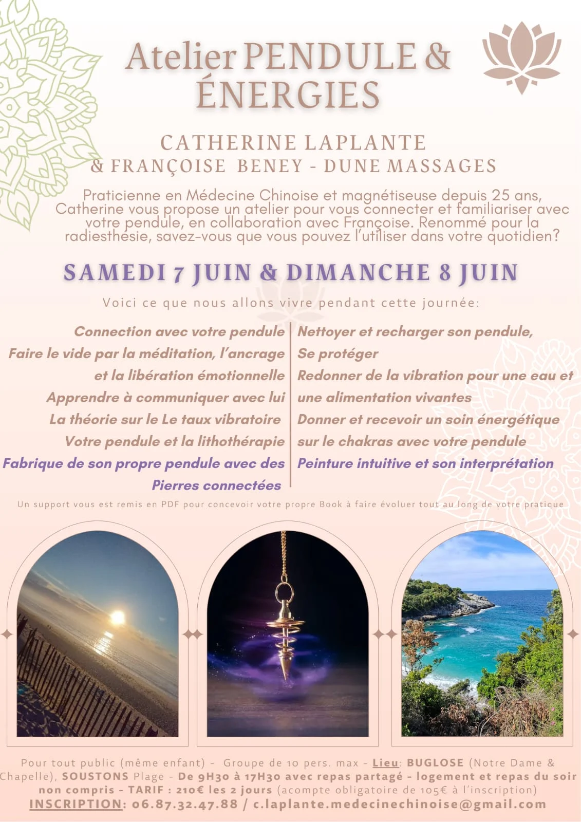 C’est avec une grande joie que je vous invite à un week-end pour vous connecter avec votre pendule et qu’il soit votre meilleur ami pour prendre soin de vous et de votre entourage.
